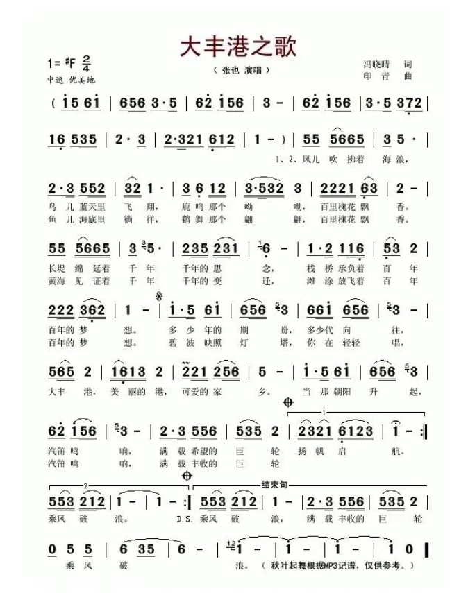 有一首專為大豐港而寫的歌