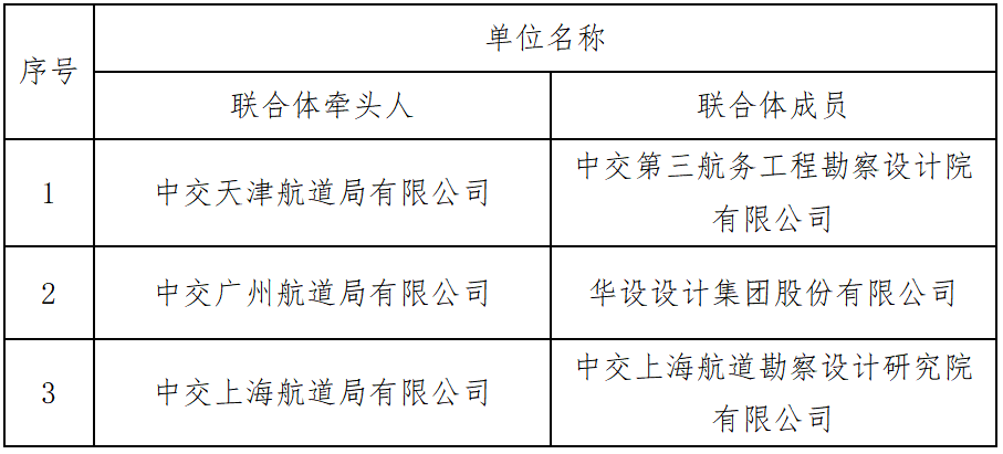 根據(jù)《濱海港區(qū)挖入式港池清理改造工程設(shè)計(jì)施工總承包BHGC-EPC標(biāo)段招標(biāo)文件》評(píng)標(biāo)辦法,經(jīng)評(píng)標(biāo)委員會(huì)評(píng)審,以下單位入圍定標(biāo)候選人: