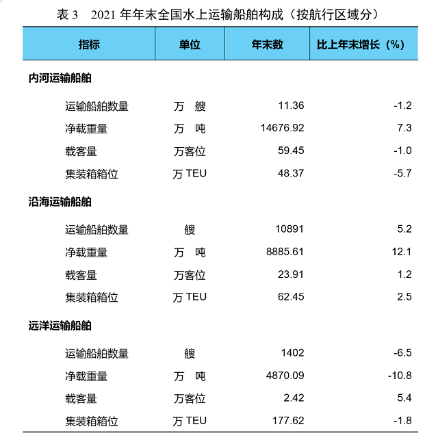2021年交通運輸行業發展統計公報