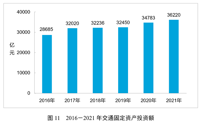 全年完成交通固定資產投資36220億元,比上年增長4.1%。