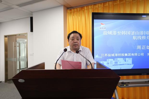 周正雄在致辭中表示,鹽城港至韓國釜山集裝箱班輪航線的開通,將充分激活鹽城港大豐港區(qū)作為中韓(鹽城)產(chǎn)業(yè)園唯一臨港配套區(qū)的政策和區(qū)位優(yōu)勢,開辟出一條綠色、集約、便捷、高效的對韓物流新通道。同時,也將進一步提升鹽城港的服務(wù)能力和水平,顯著降低腹地企業(yè)的物流成本和時間成本,實現(xiàn)經(jīng)濟效益和社會效益的雙豐收。希望能以此條航線為紐帶,與各位企業(yè)家和衷共濟、密切協(xié)作,攜手并進、互利共贏。