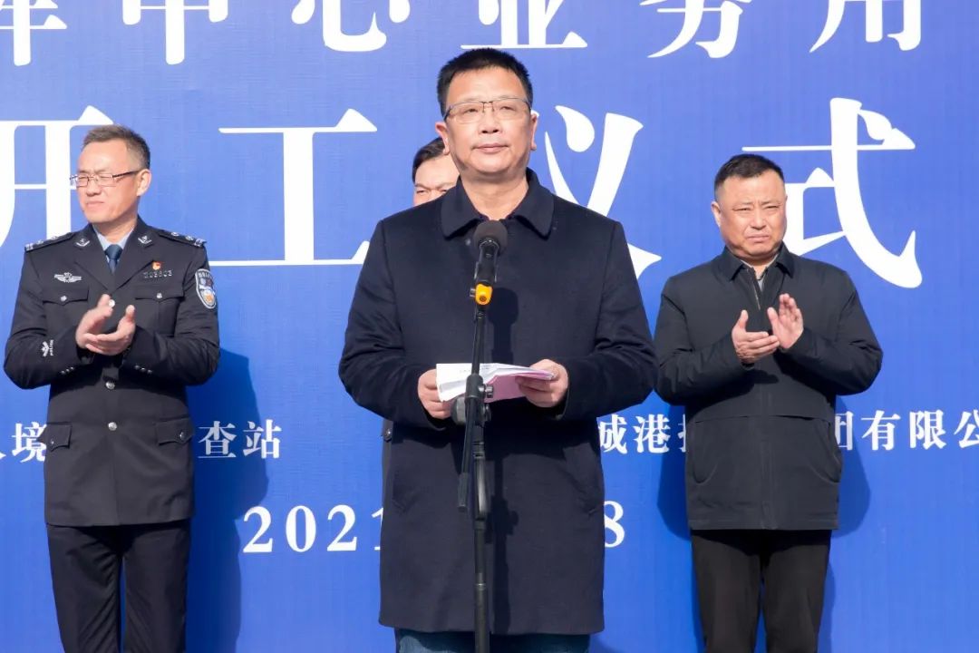 李興華在致辭中表示,邊檢指揮中心是邊檢機關(guān)指揮調(diào)度的中樞、快速反應(yīng)的龍頭、輔助決策的智囊、情報信息的中心、服務(wù)群眾的窗口,承擔(dān)著重大突發(fā)事件處理、緊急警務(wù)活動處置、群眾(旅客)求助等重要工作。鹽城邊檢指揮中心的正式啟動建設(shè),必將更加有力助推鹽城港口岸科學(xué)長遠發(fā)展,更為精準地保障鹽城港4個港區(qū)邊檢勤務(wù)和出入境通關(guān)服務(wù),更高水平滿足鹽城全域開放的需求。鹽城邊檢站全體民警職工要以新指揮中心業(yè)務(wù)用房建設(shè)為契機,以更加飽滿的熱情和更加優(yōu)良的作風(fēng),持續(xù)推動邊檢服務(wù)管理創(chuàng)新,落實便民利企舉措,全力服務(wù)促進地方經(jīng)濟社會發(fā)展。同時要進一步提高站位、主動對接,全力服務(wù)鹽城港“五新”港口建設(shè),支持鹽城港打造成綠色、生態(tài)、智慧、平安、美麗的沿淮河生態(tài)經(jīng)濟帶和環(huán)黃海生態(tài)經(jīng)濟圈“一帶一圈”重要節(jié)點樞紐港,不斷增強港口對沿海發(fā)展的支撐力,共同為鹽城勇當(dāng)沿海地區(qū)高質(zhì)量發(fā)展排頭兵作出新的更大貢獻。