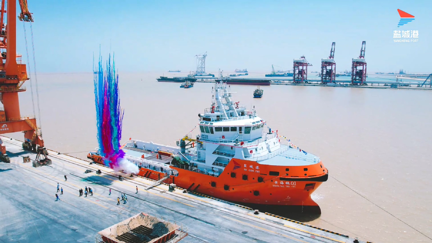 根據鹽城市委、市政府統一部署要求,為滿足中海油LNG碼頭建設運營需求,同時配合做好海上搜救工作,增強鹽城海域海上搜救力量,鹽城港集團黨委立即行動,堅決扛起國有企業責任擔當,僅用不到4個月時間,便完成了“黃海拖01”輪的購置和建造工作。
