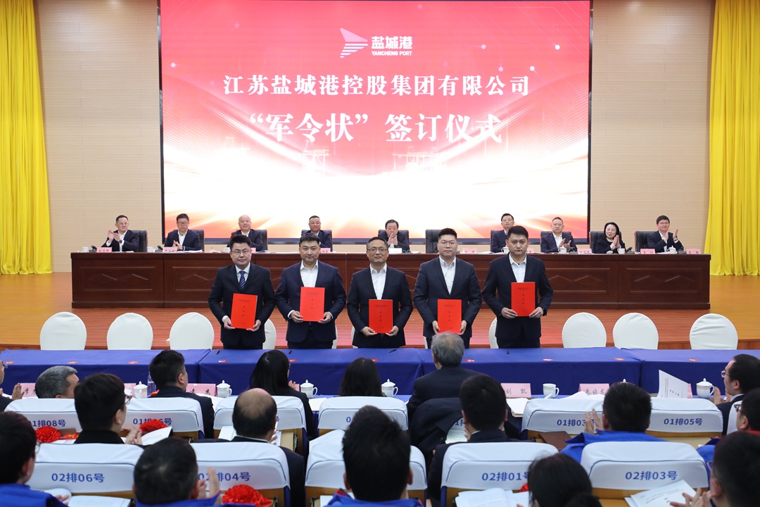 會議宣讀了關(guān)于表彰2024年度先進(jìn)集體及個人的決定,并為獲獎代表進(jìn)行頒獎;科技集團(tuán)、大豐港集團(tuán)、響水港集團(tuán)等5家單位作表態(tài)發(fā)言。資本運(yùn)營公司、大豐港集團(tuán)、航運(yùn)集團(tuán)和集團(tuán)投融資部等10單位和部門現(xiàn)場簽訂生產(chǎn)經(jīng)營軍令狀。