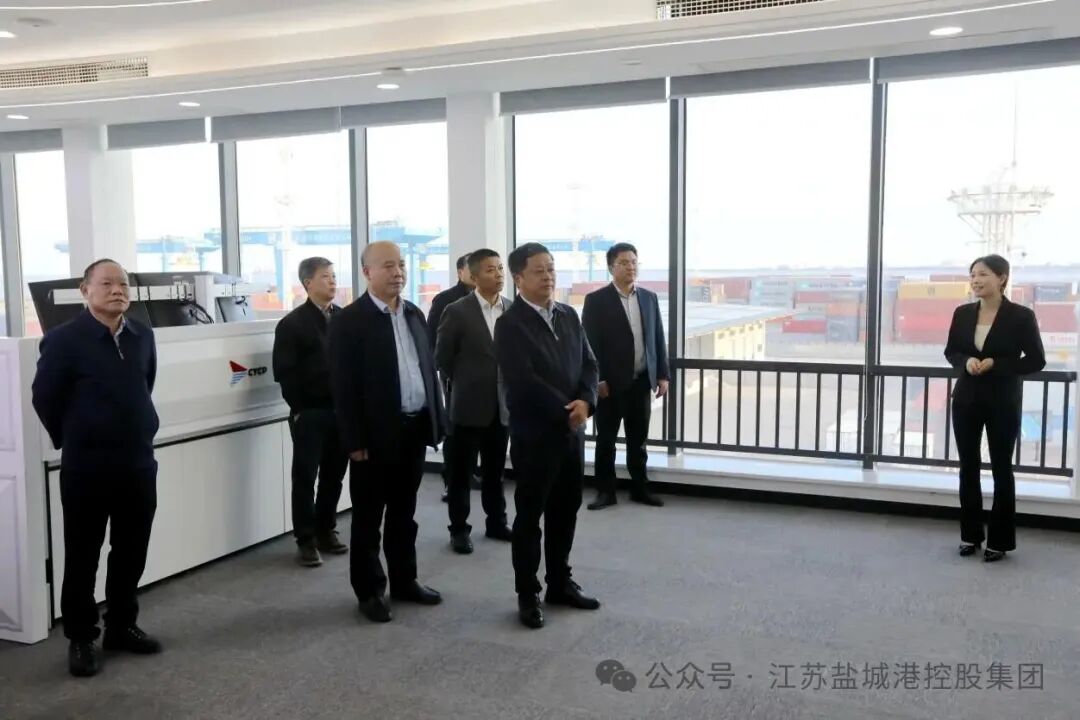 調研中,胡勇一行首先抵達鹽城港保稅物流中心。在現場,考察團認真聽取了相關負責人關于保稅物流中心功能定位、運營模式、發展現狀及未來規劃的介紹,詳細了解了其在服務地方外貿、降低企業物流成本、促進產業集聚等方面發揮的重要作用。隨后,考察團前往大豐港集裝箱碼頭,大豐港開發集團相關負責人向考察團匯報了碼頭泊位能力、航線布局、吞吐量以及未來建設規劃等情況,雙方就提升港口能級、優化口岸營商環境等話題進行了現場交流。在自動化集裝箱堆場,技術人員現場演示了智能化操作流程,講解了智能化改造對提升作業效率、保障生產安全、降低運營成本的顯著成效,展現了鹽城港在智慧港口建設方面取得的進展。