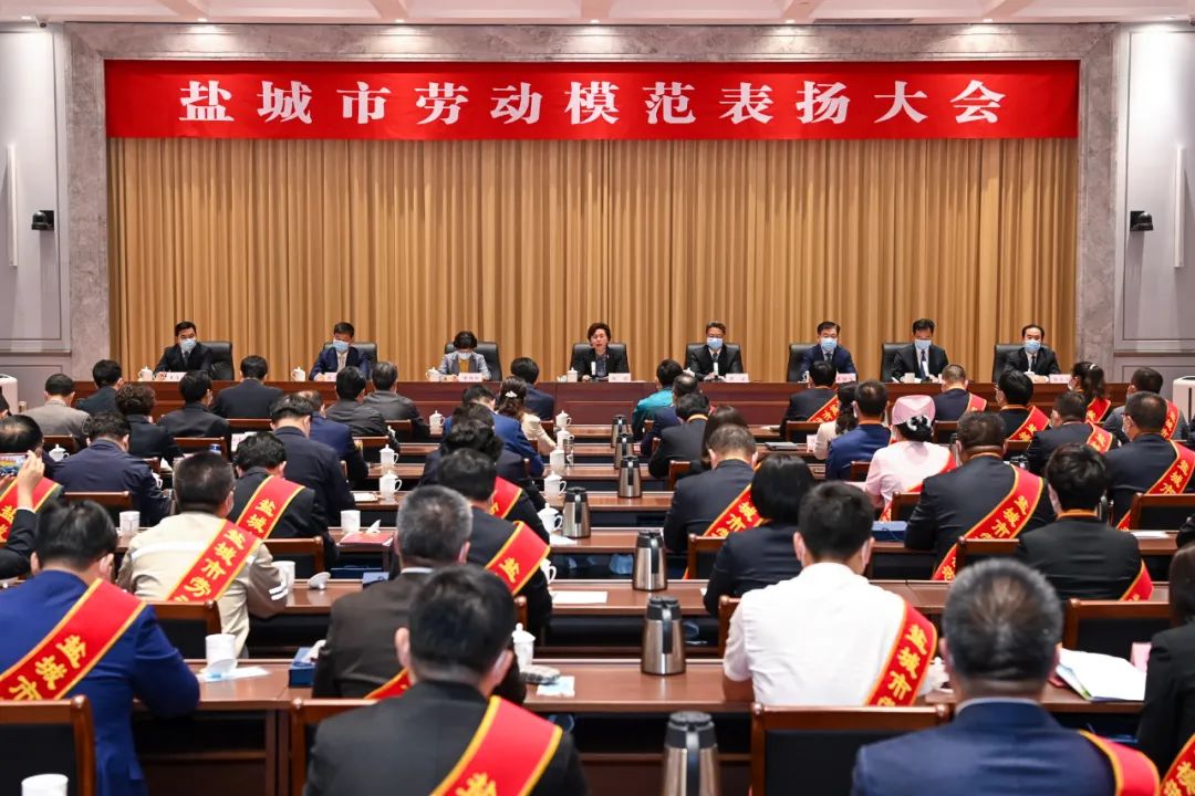 下午3時(shí),大會(huì)開(kāi)始,全體起立,奏唱國(guó)歌。會(huì)上宣讀《中共鹽城市委鹽城市人民政府關(guān)于表?yè)P(yáng)鹽城市勞動(dòng)模范的決定》,授予300名同志“鹽城市勞動(dòng)模范”稱號(hào)。在喜慶的氣氛中,身披紅色綬帶的市勞動(dòng)模范代表登上主席臺(tái),市領(lǐng)導(dǎo)向他們頒發(fā)榮譽(yù)證書(shū)和獎(jiǎng)?wù)隆{}城郵政公司快遞員陳國(guó)勇代表市勞動(dòng)模范宣讀倡議書(shū),號(hào)召全市廣大勞動(dòng)者勤奮勞動(dòng),扎實(shí)工作,銳意進(jìn)取,勇于創(chuàng)造,以昂揚(yáng)向上的精神狀態(tài)和“比學(xué)趕超”的工作干勁,再創(chuàng)新業(yè)績(jī)、建功新時(shí)代,以實(shí)際行動(dòng)迎接黨的二十大勝利召開(kāi)。